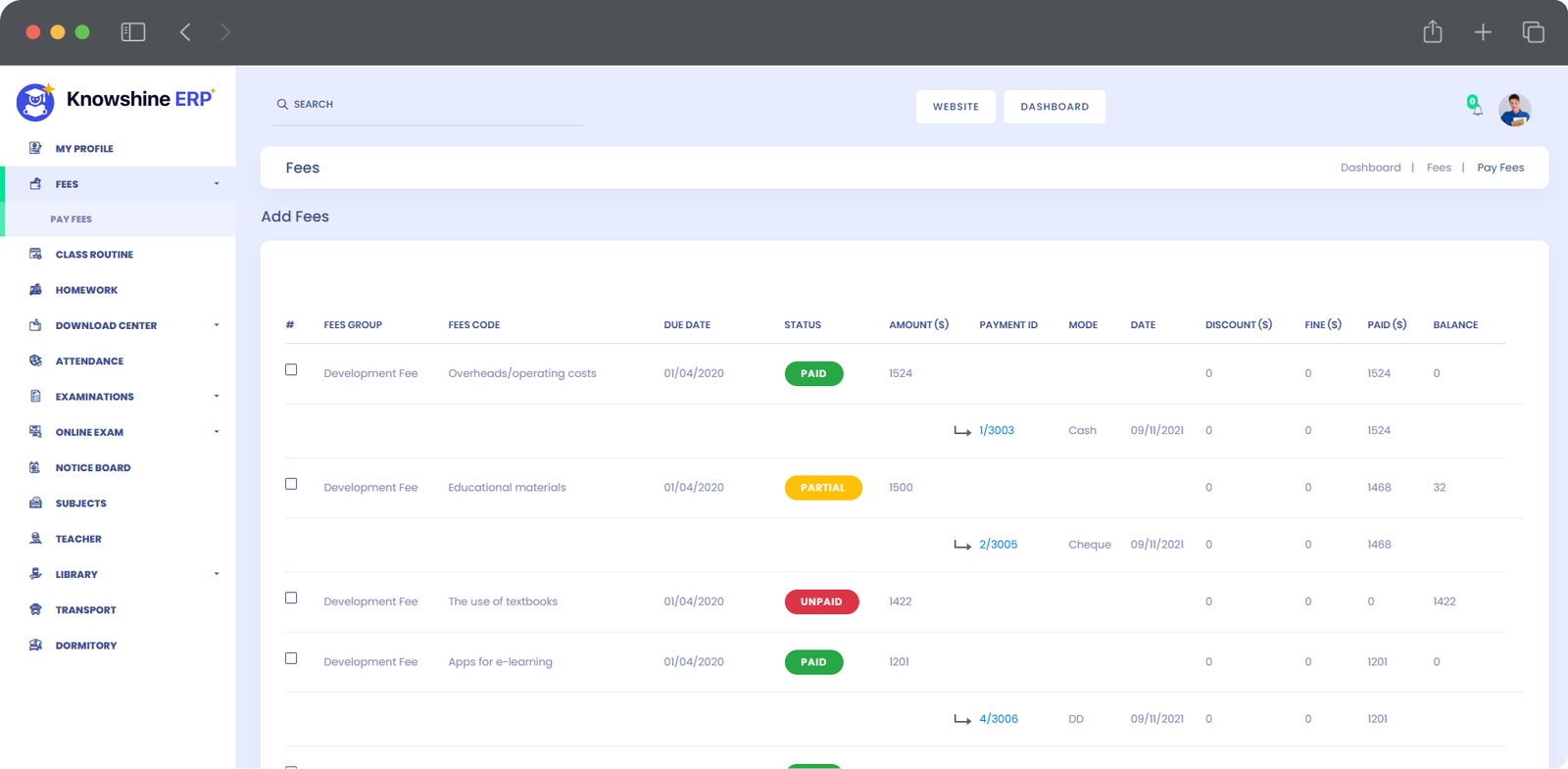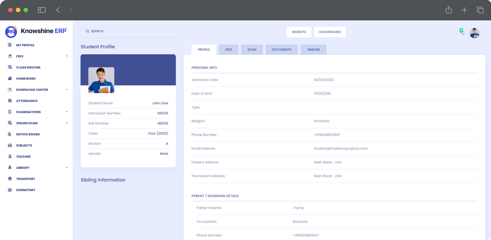 | Student's login Details | |